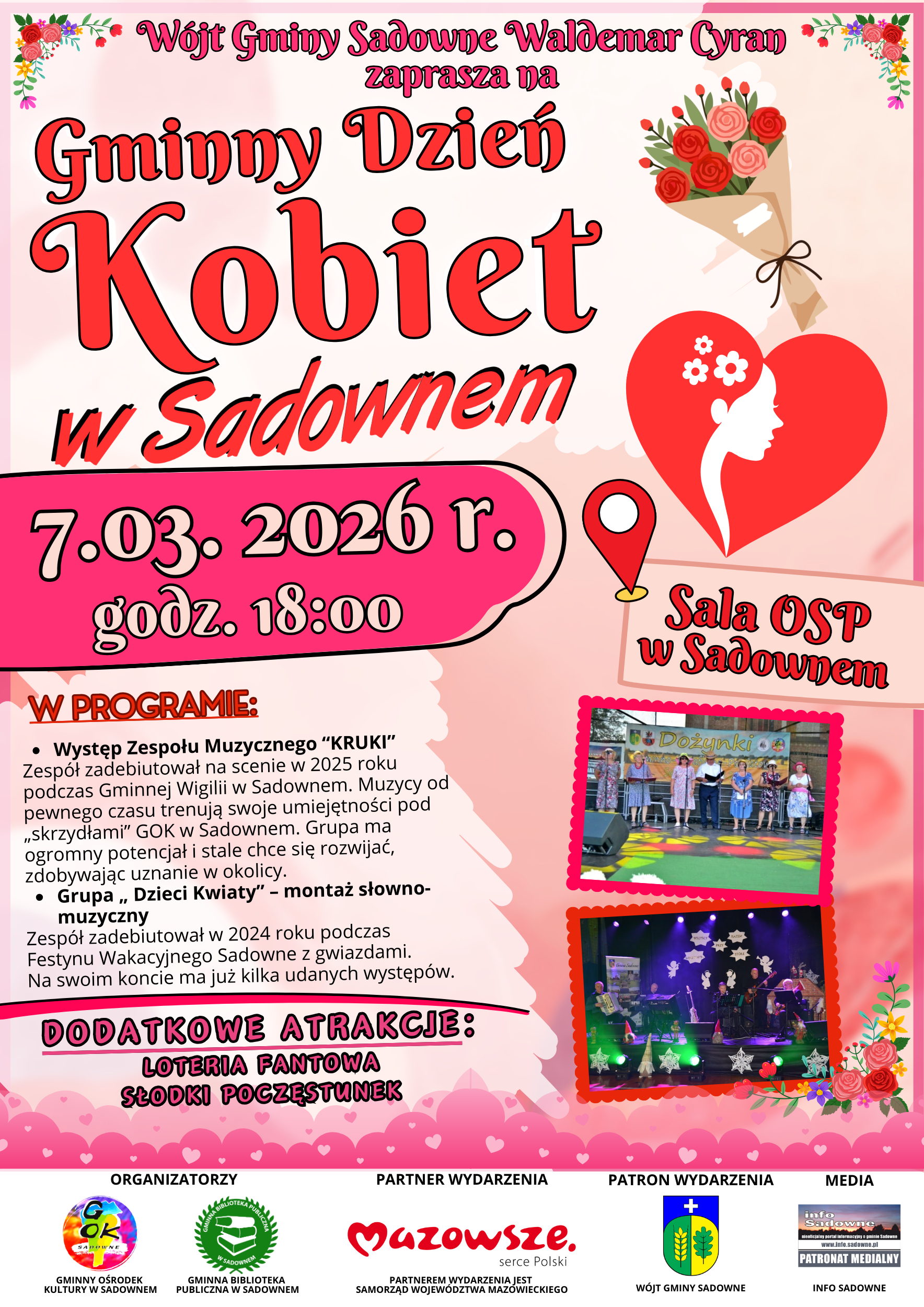 Wójt Gminy Sadowne Waldemar Cyran zaprasza na wyjątkowe wydarzenie z okazji Dnia Kobiet! Przygotowaliśmy dla Was mnóstwo wspaniałych atrakcji i artystycznych wrażeń.